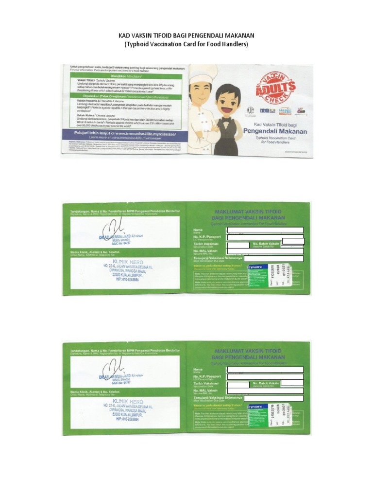 Kad Vaksin Tifoid Bagi Pengendali Makanan K3 Pdf