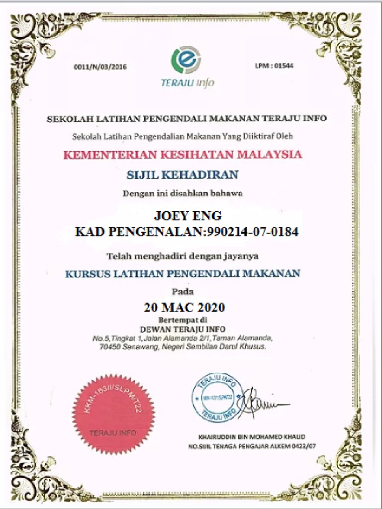 The achievement underscores McDonalds commitment to support the governments agenda for Malaysia to achieve 35 percent skilled workers by 2020. Tugas Am Pengendali Makanan Di Premis Makanan Mengikut Perspektif Undang-Undang. Salinan kad pengenalan pasport pemohon 1Visual iklan papan tanda berwarna dan gambar lokasi pemasangan iklan Jika berkenaan.